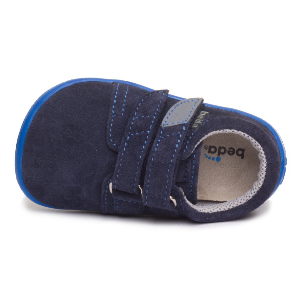 Beda Daniel jsou dětské celoroční kožené boty se zapínáním na suchý zip. Povrchová úprava boty je broušená kůže v tmavě modré barvě. Reflexní prvek na suchém zipu. Vyjímatelná vložka bez klenby z povrstvené usně.