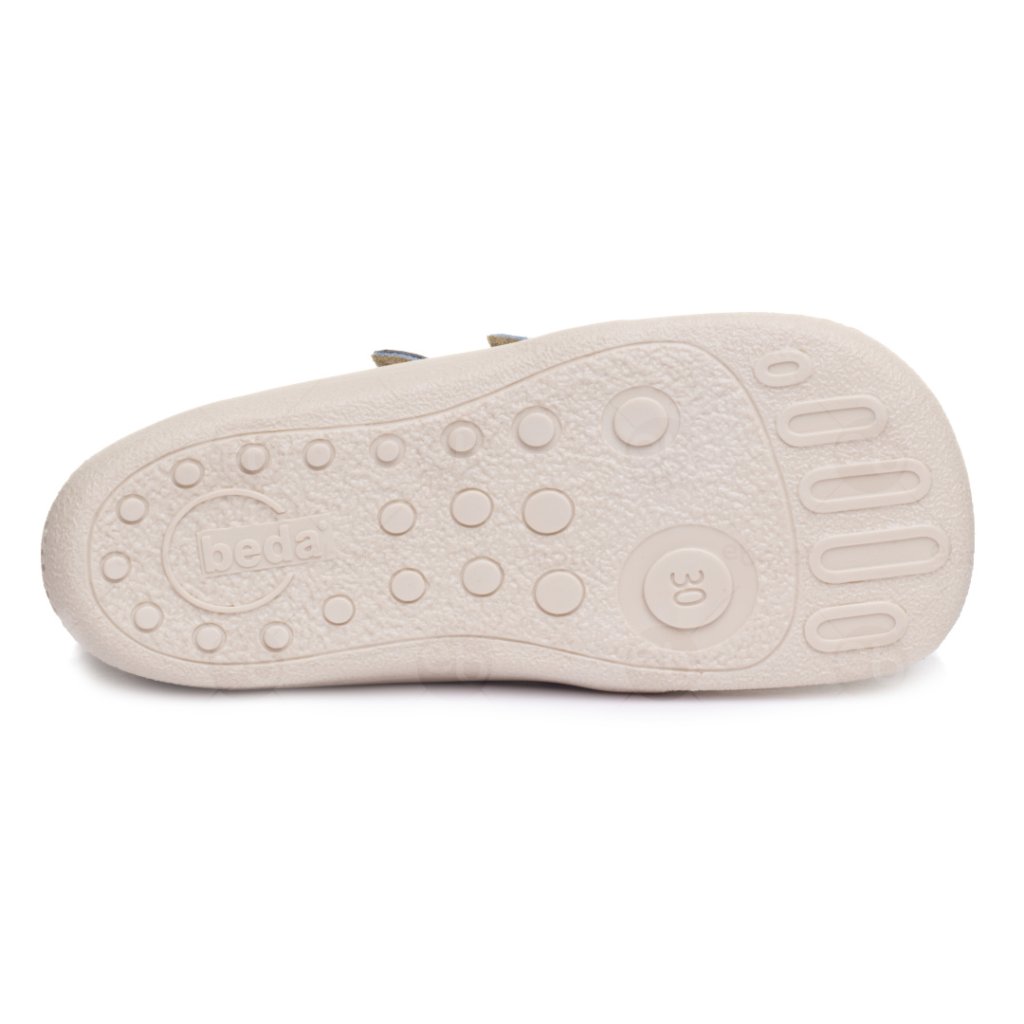 Modely zahrnuté v produktové řadě „BEDA BAREFOOT” se vyznačují nadstandardní šířkou v oblasti špice obuvi, jenž respektuje přirozený tvar chodidla a poskytuje dostatečný prostor pro pohyb prstů. Obuv je vyráběna s maximálně tenkou a vysoce flexibilní podrážkou. Celkově jsou botky velmi lehké, poddajné a poskytují požadovaný komfort. Obuv je dodávána s textilní vyjímatelnou stélkou bez podpory klenby.