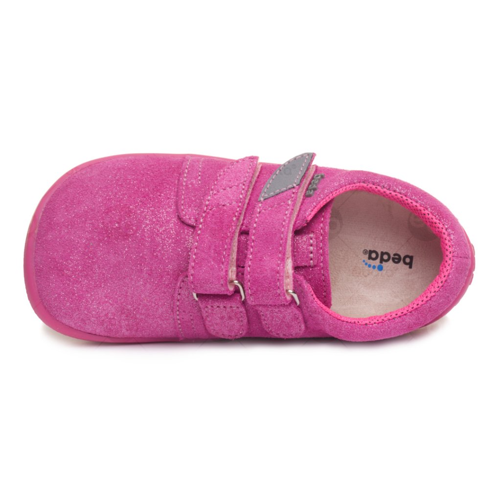 Beda Janette jsou dětské celoroční kožené boty se zapínáním na suchý zip. Povrchová úprava boty je broušená kůže v růžové barvě se třpitkami. Reflexní prvek na suchém zipu. Vyjímatelná vložka bez klenby z povrstvené usně.