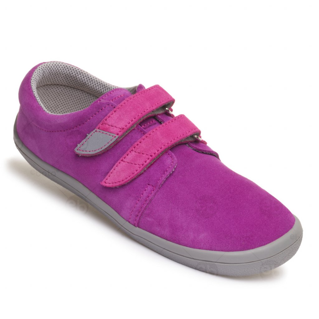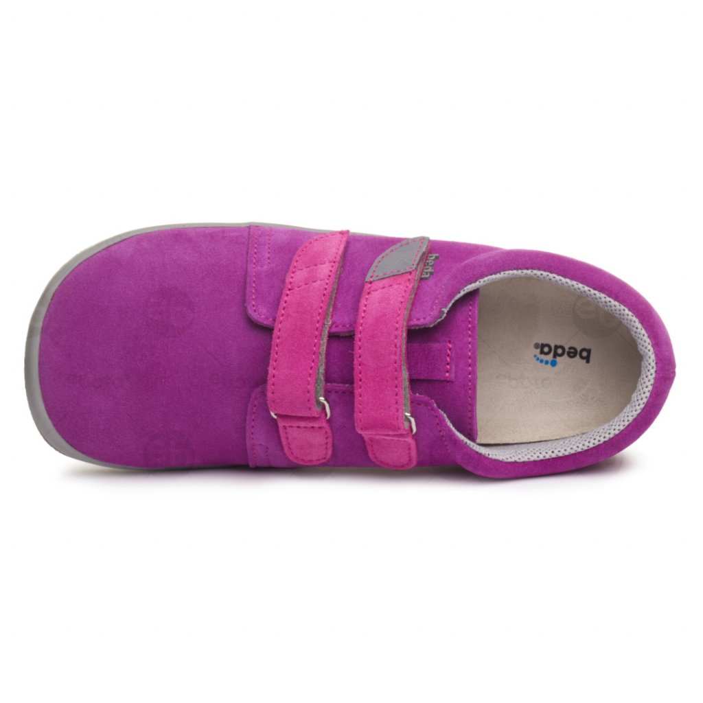 Beda Mia jsou dětské celoroční kožené boty se zapínáním na suchý zip. Povrchová úprava boty je broušená kůže ve fialové barvě. Reflexní prvek na suchém zipu. Vyjímatelná vložka bez klenby z povrstvené usně.
