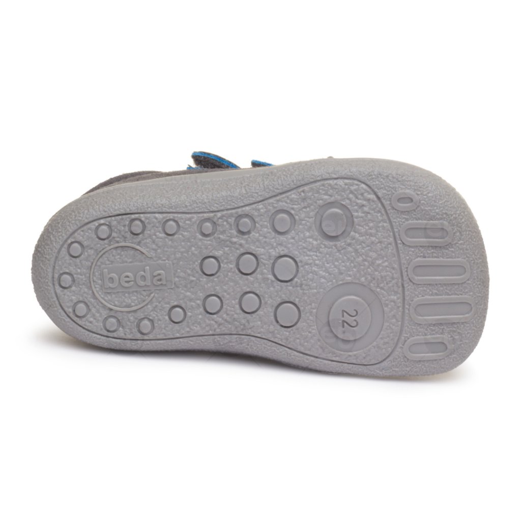 Beda Robin jsou dětské celoroční kožené boty se zapínáním na suchý zip. Povrchová úprava boty je broušená kůže v šedé barvě. Reflexní prvek na suchém zipu. Vyjímatelná vložka bez klenby z povrstvené usně.