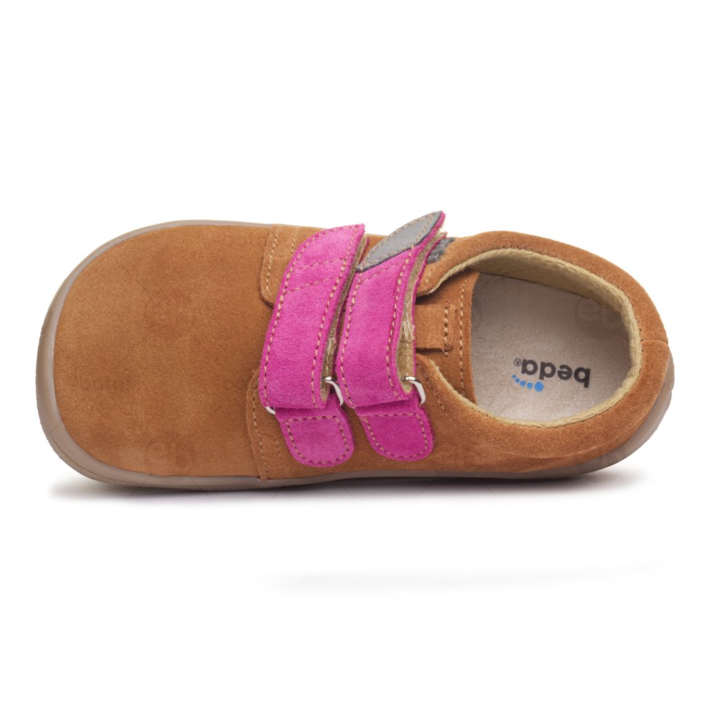 Beda Zoe jsou dětské celoroční kožené boty se zapínáním na suchý zip. Povrchová úprava boty je broušená kůže ve světle hnědé barvě. Reflexní prvek na suchém zipu. Vyjímatelná vložka bez klenby z povrstvené usně.