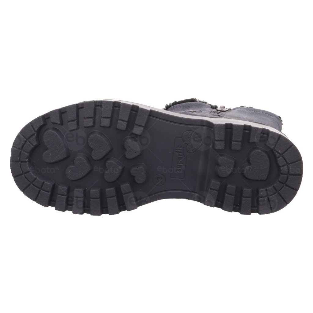 Vzorovaná efektní kůže se třpytivými částečkami dodává této skvělé botě osobitý, rozverný vzhled - geniální nápad. Stejně jako ozdobný vnější zip, díky kterému je nazouvání boty opravdu snadné. Stylově rustikální polyuretanová podrážka má na spodní straně pro kontrast sladká srdíčka. Je také lehká a pružná, což slibuje optimální stabilitu a dobré odvalování.
