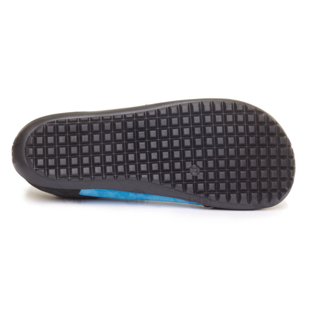 Tenisky Beda Black Heaven jsou kožené polobotky se šněrováním. Povrchová úprava boty je broušená kůže v barevné kombinaci světle modrá / černá. Vyjímatelná textilní vložka bez klenby.
