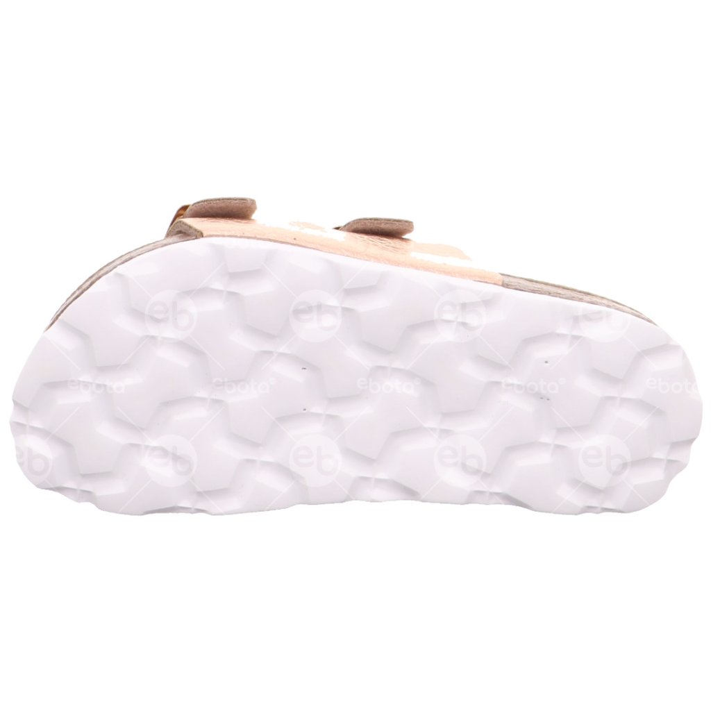 Měkká korková stélka potažená kůží se spolu s pružnou podrážkou dokonale přizpůsobí pohybům dětských nohou. Díky nastavitelným přezkám lze model individuálně přizpůsobit na šířku nohy.